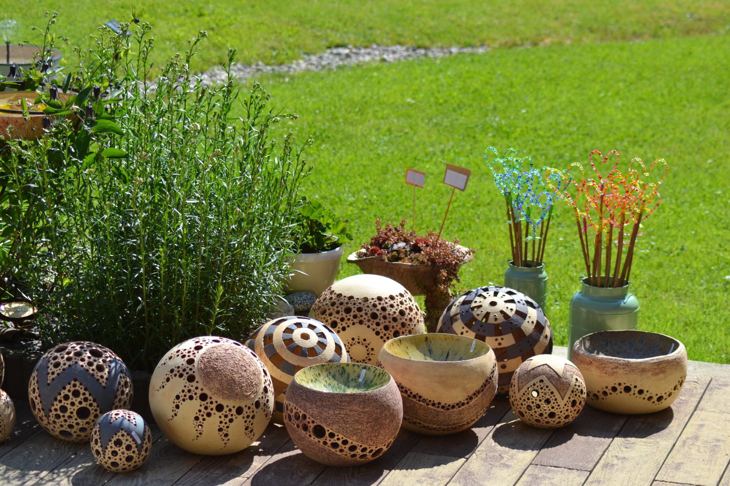 Keramická hobby dílna manželů Hikešových v Oslavici nabízí výstavu originálních děl především zahradní keramiky, stély proplétané českými skleněnými korálky, hudební nástroje UDUbubny a spoustu nápaditých kousků do interiéru.